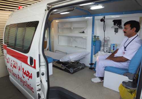 تتوفر خدمات الإسعاف بما في ذلك الطاقم الطبي في جميع أنحاء مكة المك
